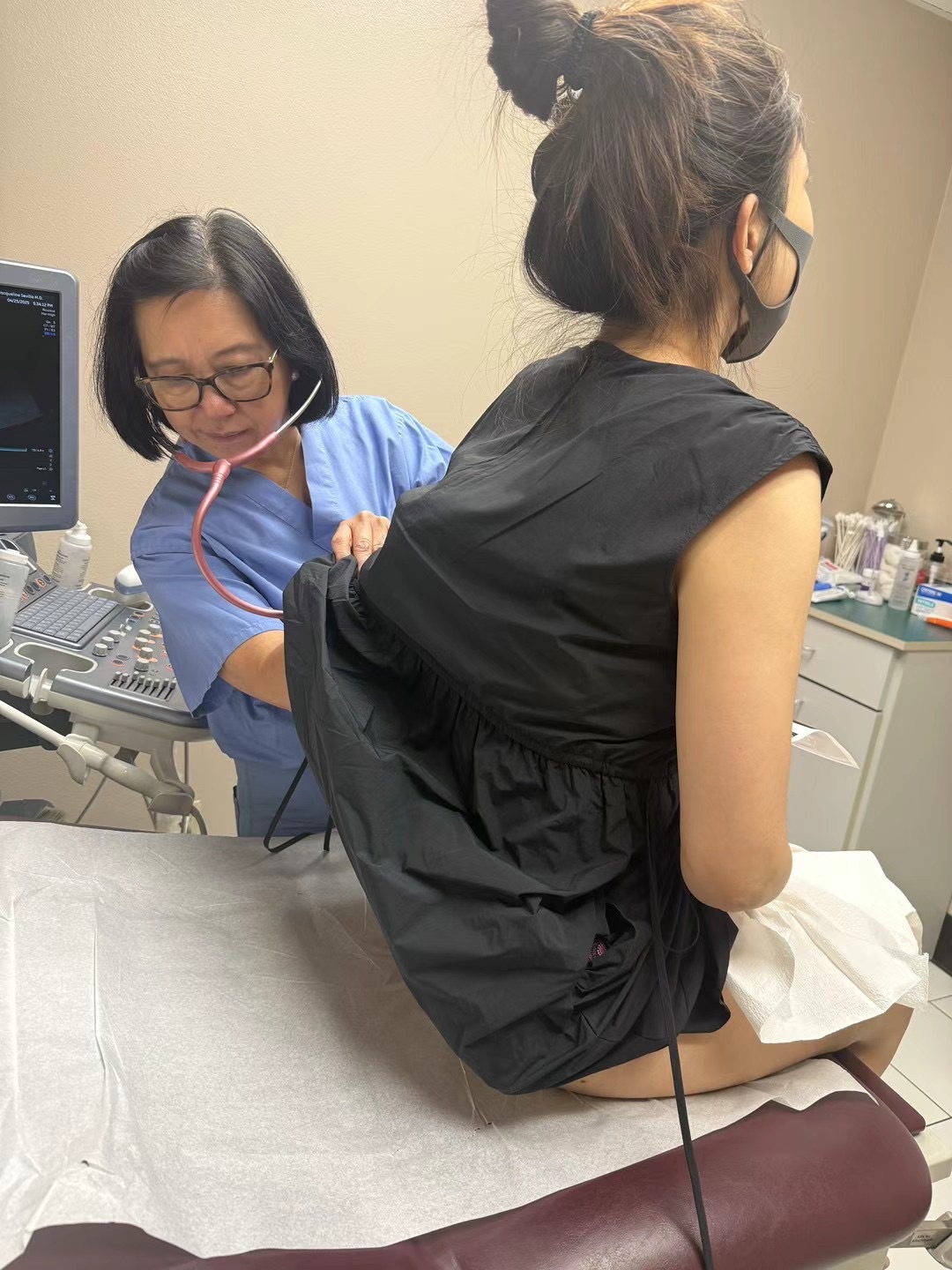 Dr. Sevilla於診所內幫孕婦做例行產檢超音波檢查 -