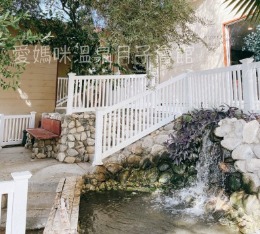 愛媽咪溫泉月子會館佔地6畝,擁有戶外鯉魚池、木棧道、戶外烤肉區、室內休閒沙發區等空間,因應不同天氣可安排適合全家老小不同需求的室內外休閒活動(散步、烤肉、採果、餵魚...)
